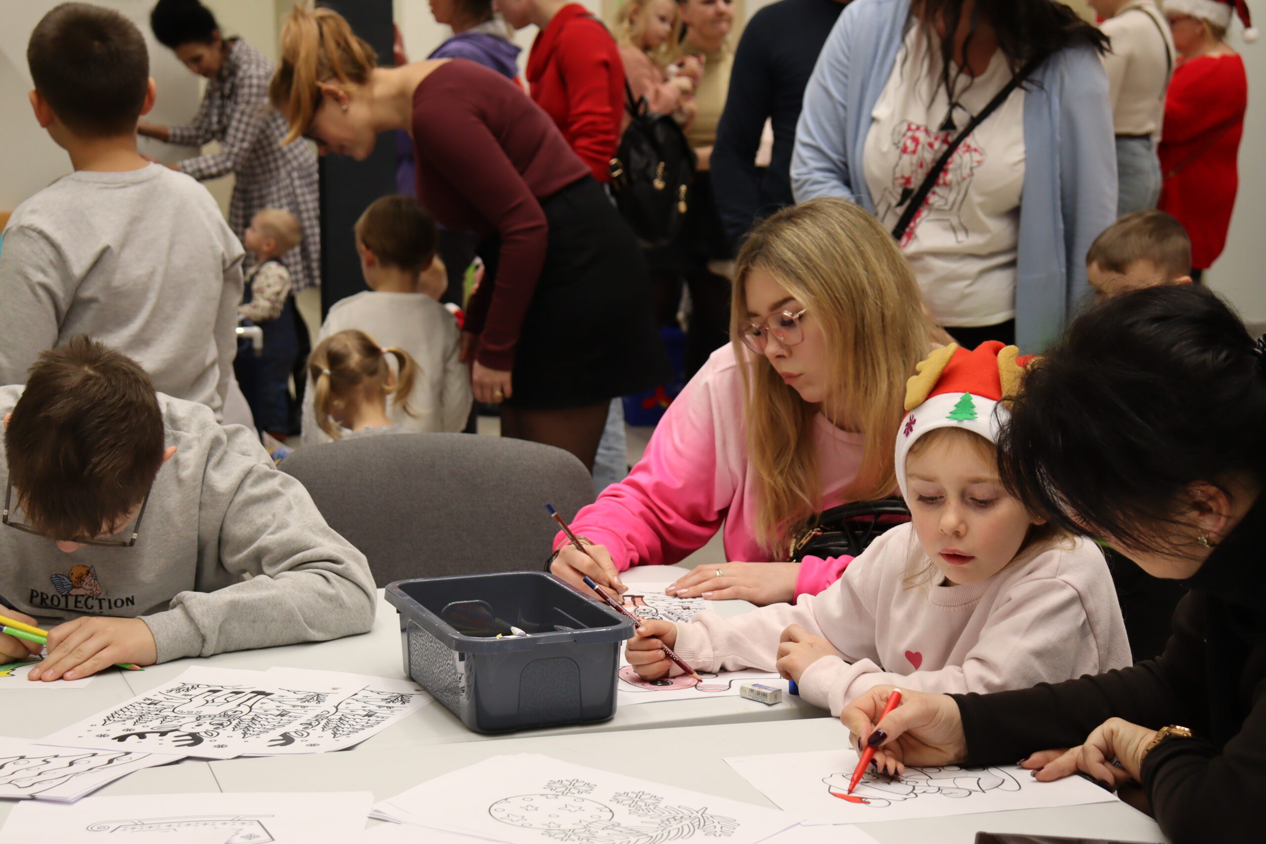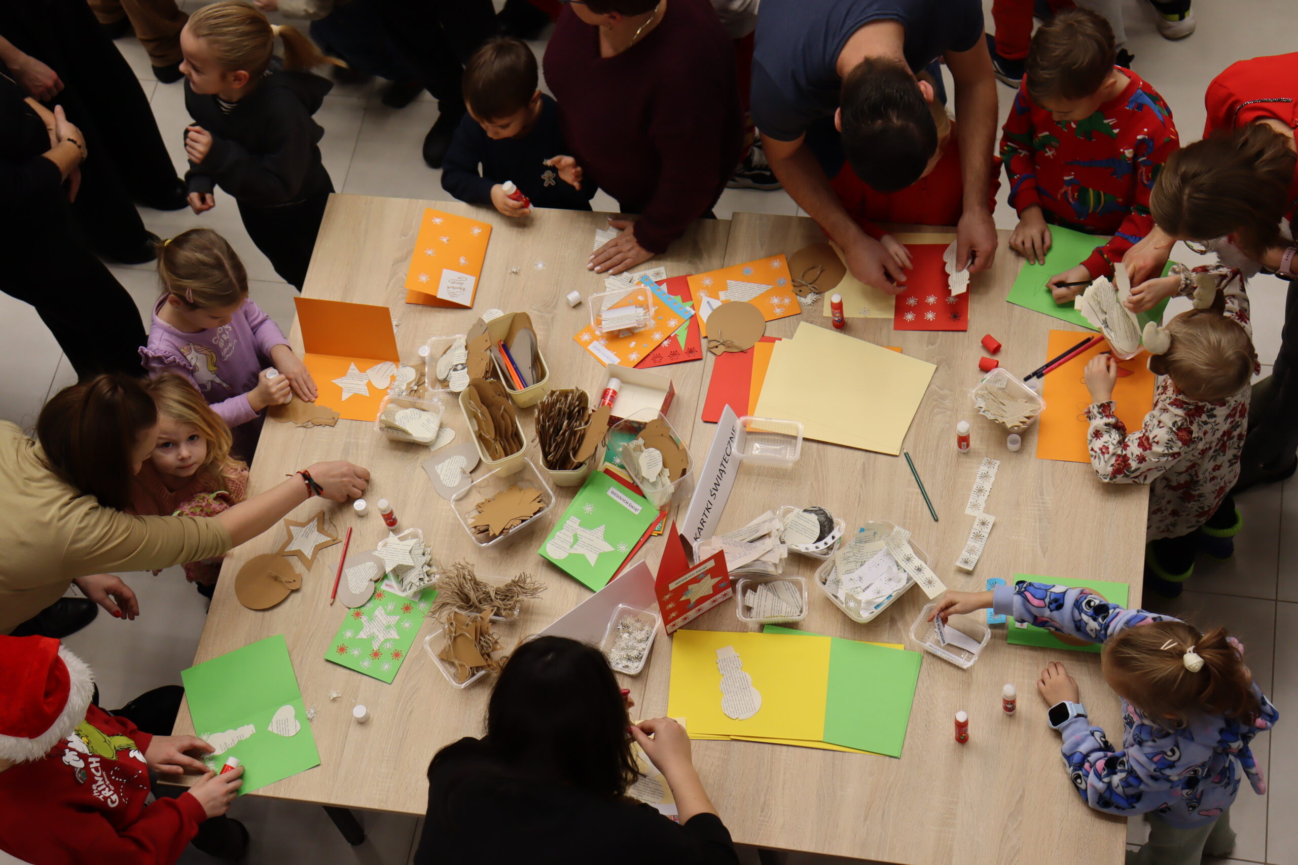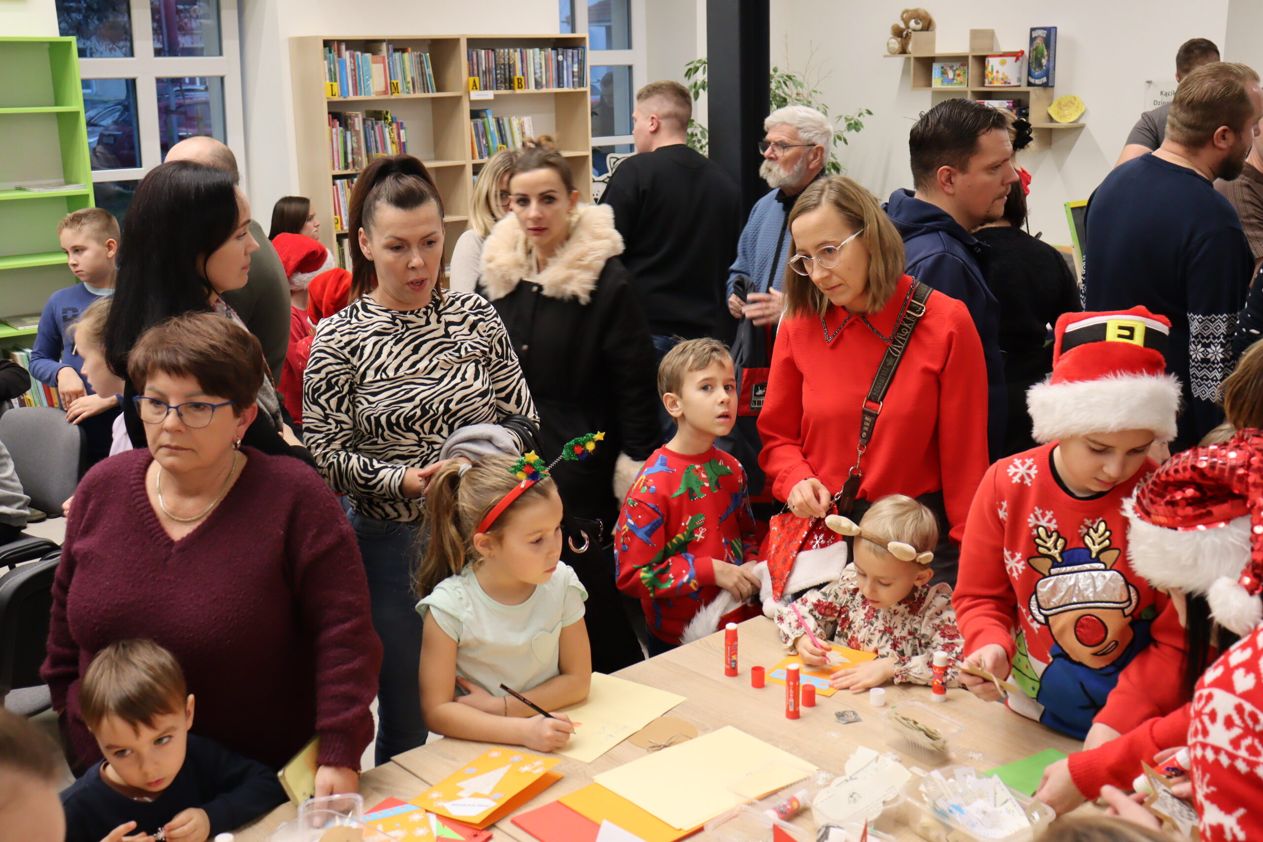 Dla dzieci przygotowano również kreatywne warsztaty, podczas których wykonywano świąteczne kartki i zakładki do książek, a także kolorowe tatuaże. Dużym zainteresowaniem cieszyły się gry planszowe, ufundowane przez Nadleśnictwo Babimost – za co również składamy serdeczne podziękowania.