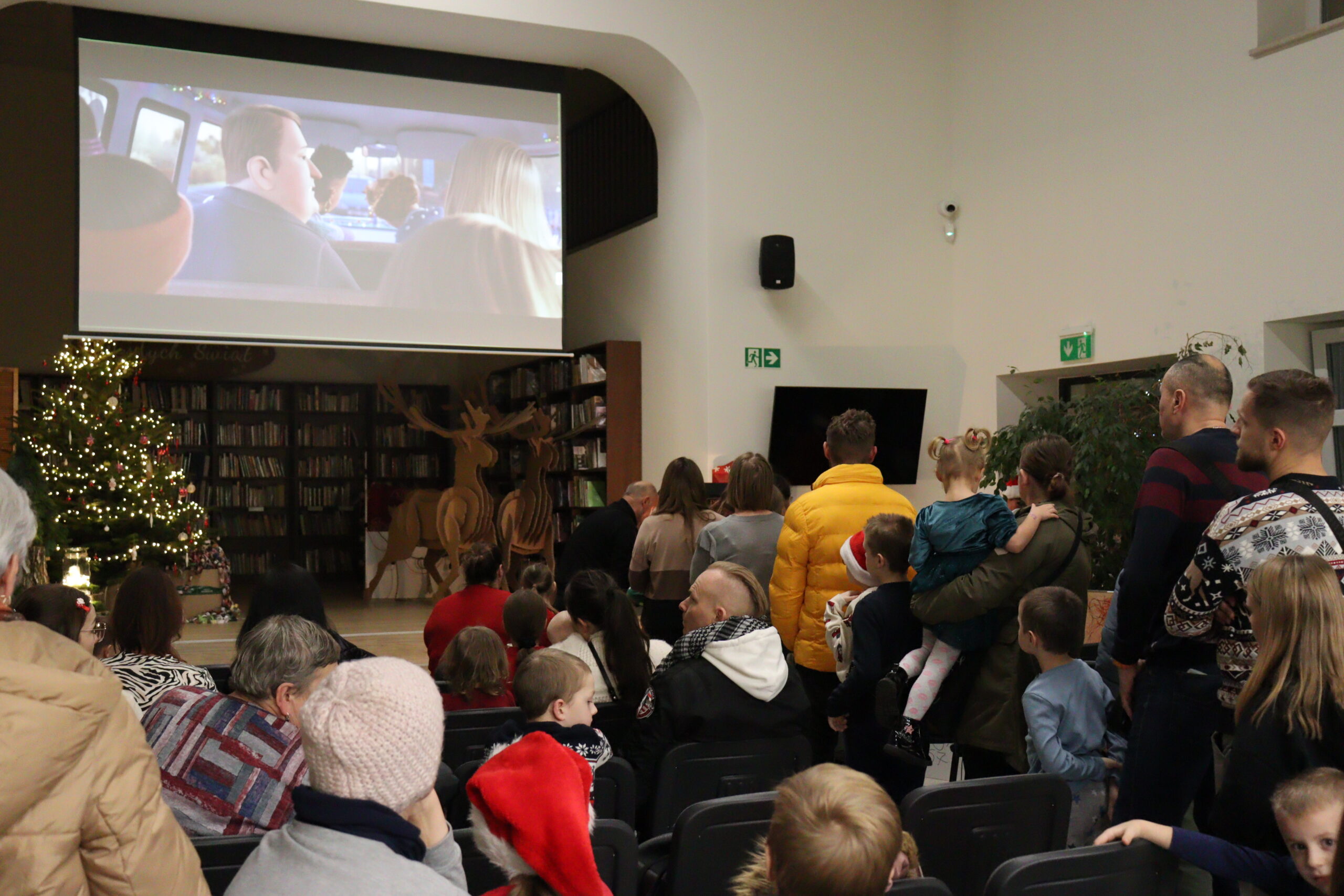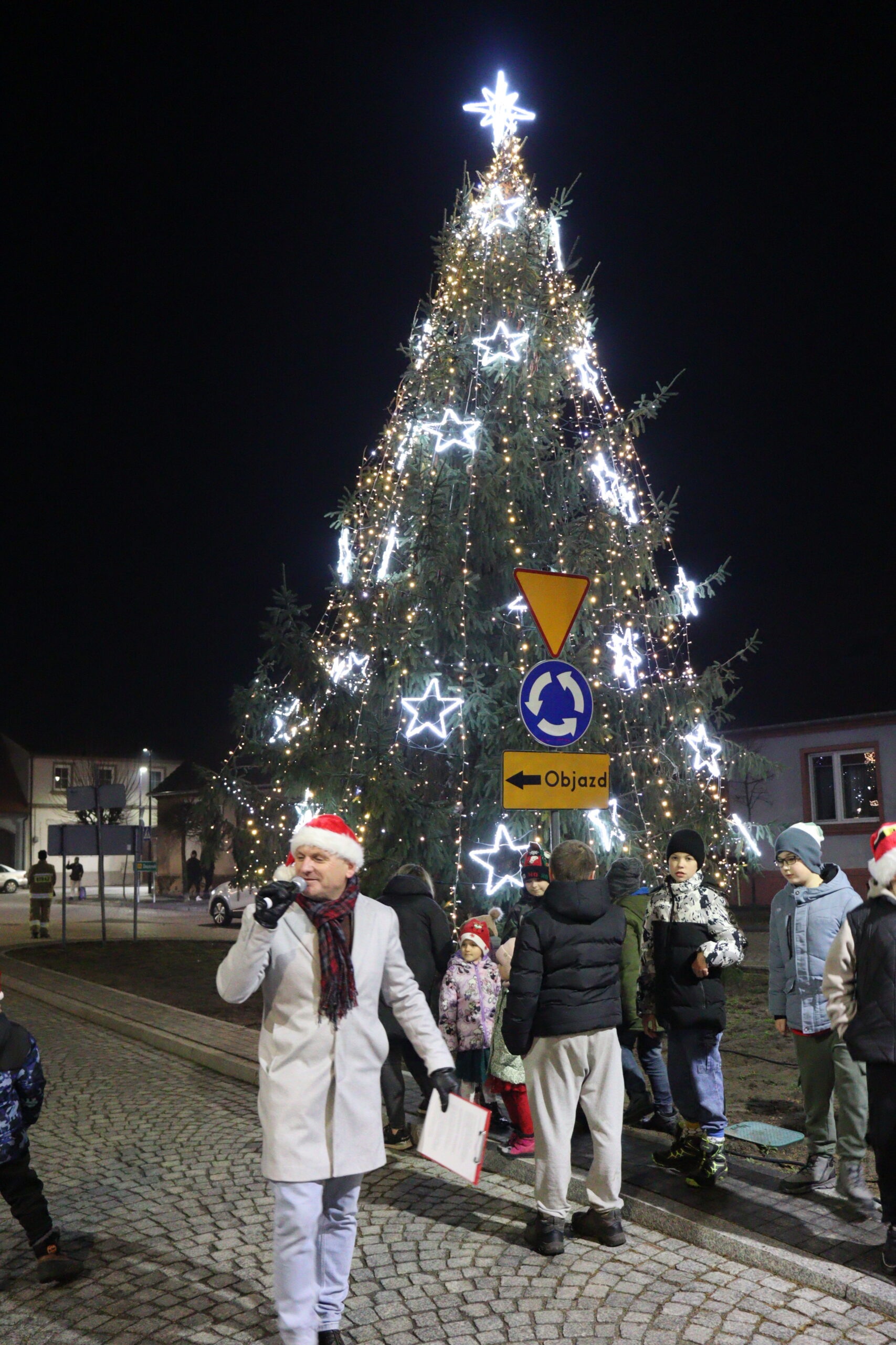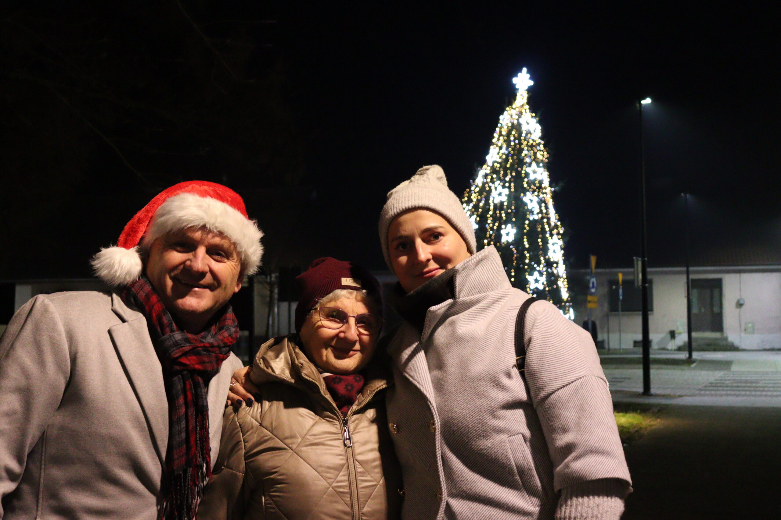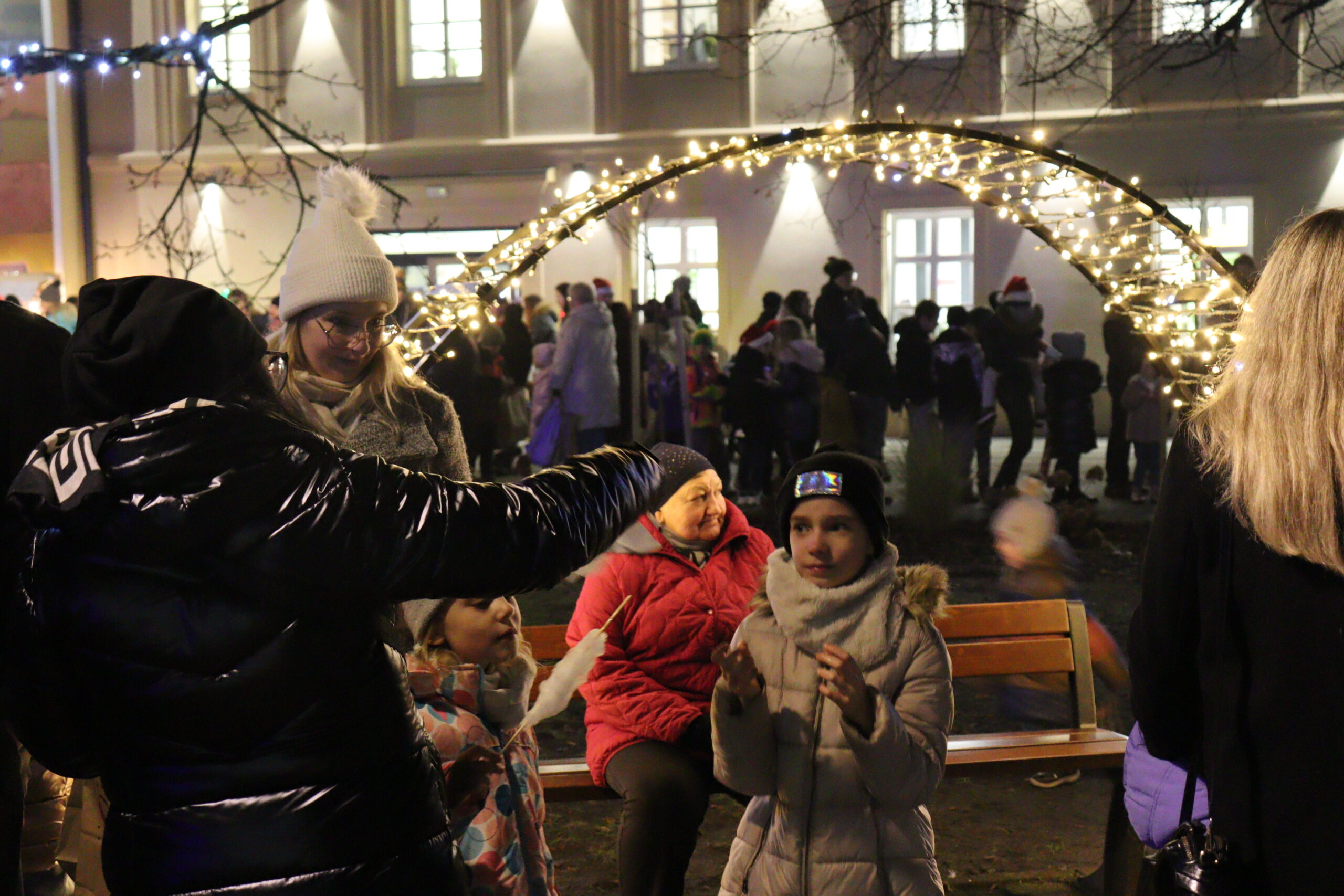 Po zapadnięciu zmroku odbyło się uroczyste uruchomienie świątecznej iluminacji. Park przed biblioteką rozbłysnął świątecznymi światłami, tworząc wyjątkową, magiczną scenerię. Kulminacyjnym momentem wydarzenia było wspólne włączenie świateł na gminnej choince, które zgromadziło uczestników w atmosferze radości i wspólnoty.
