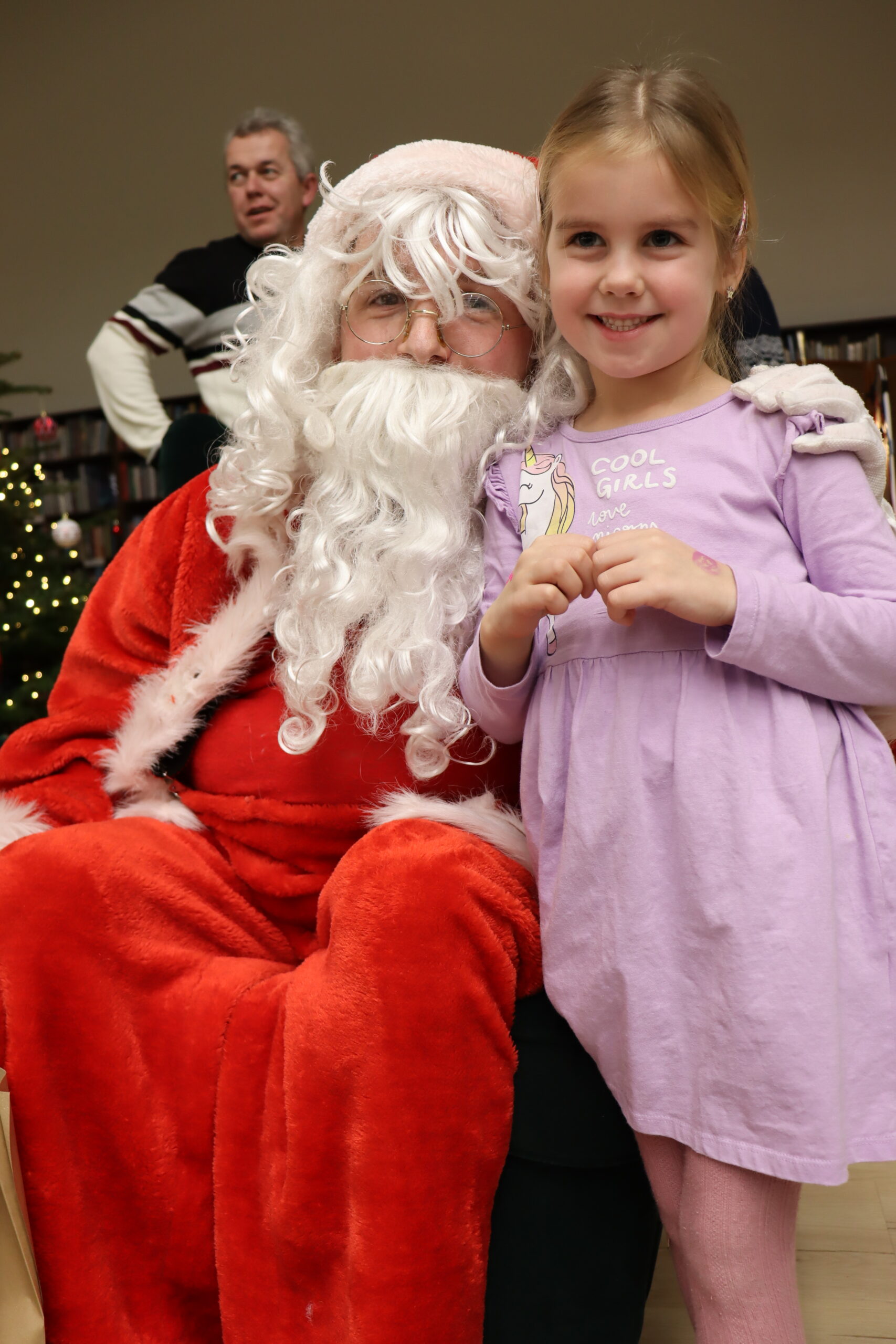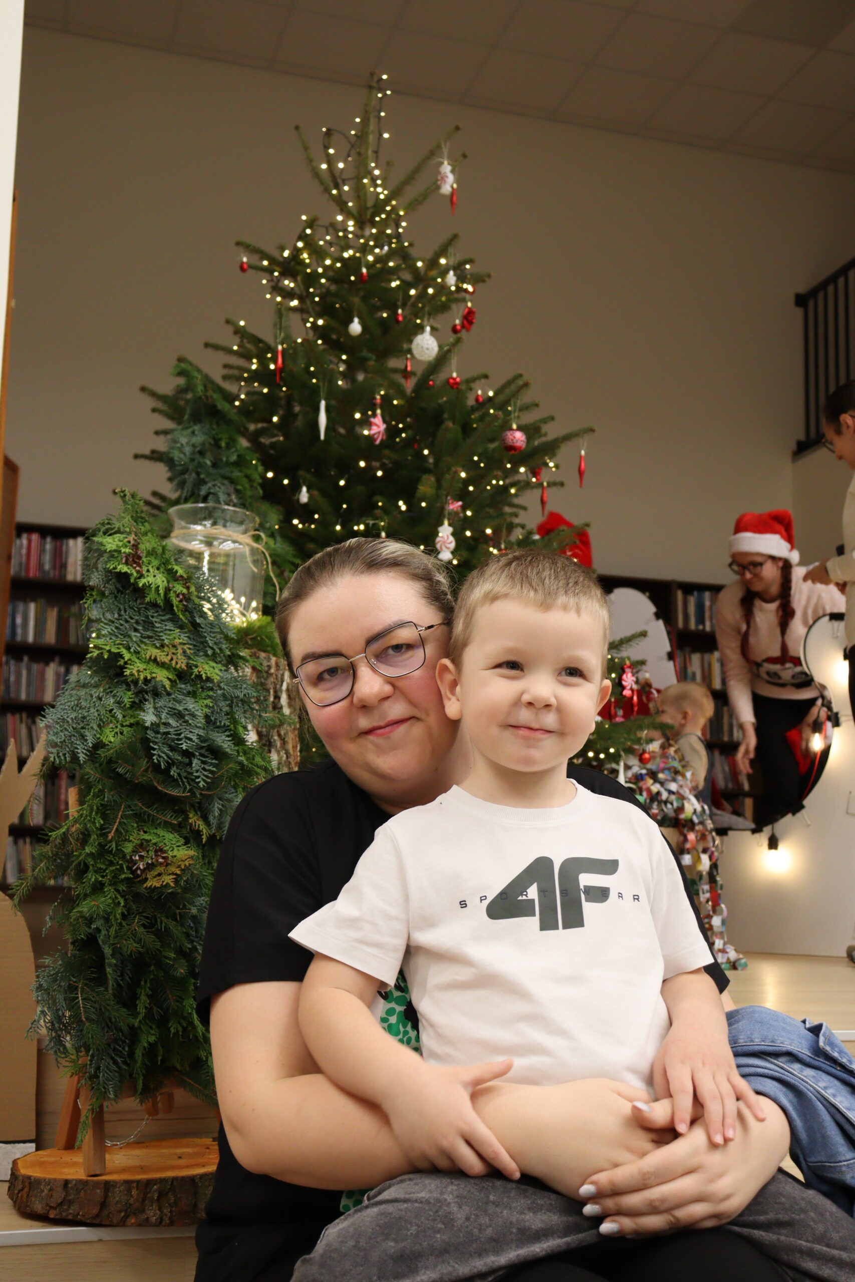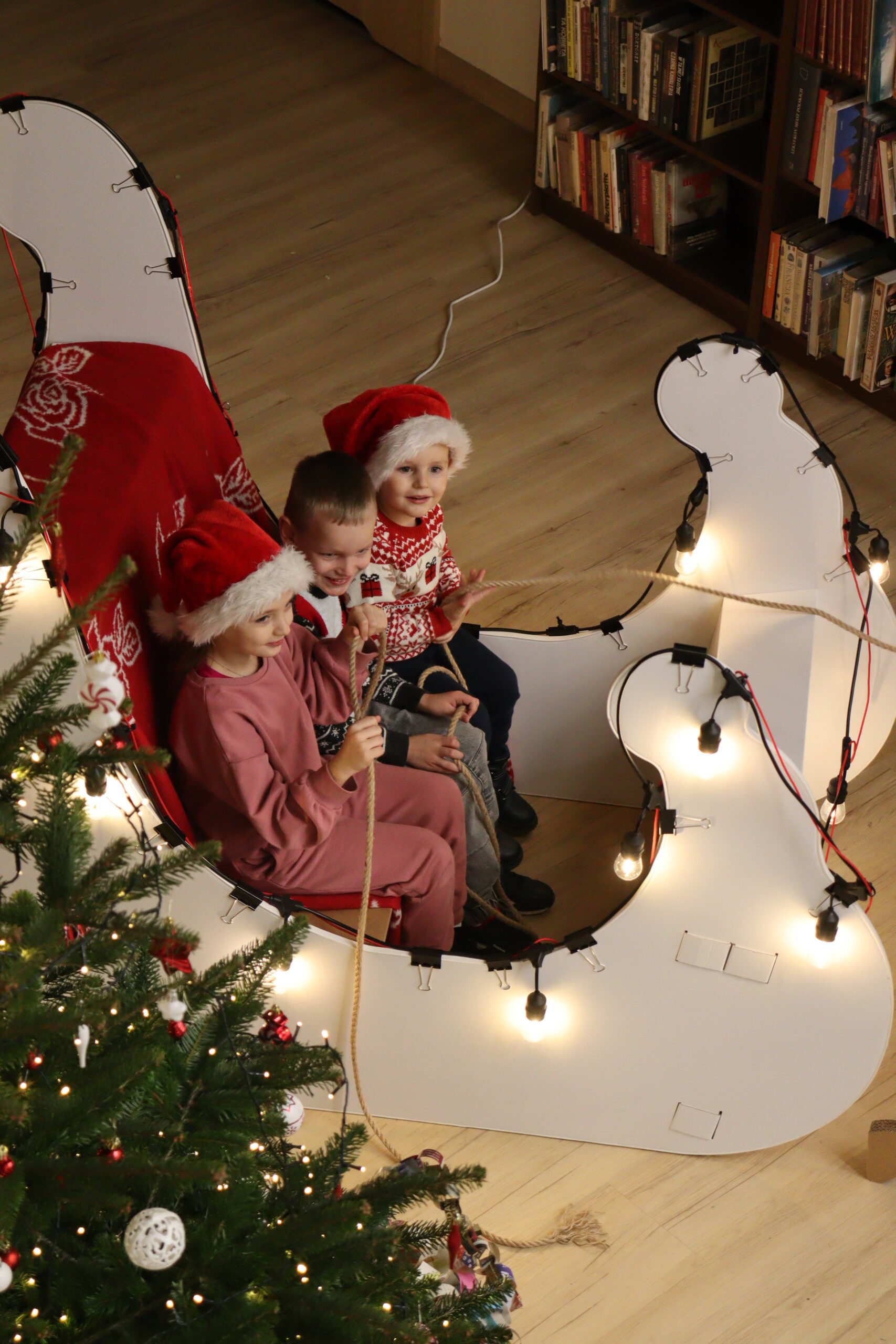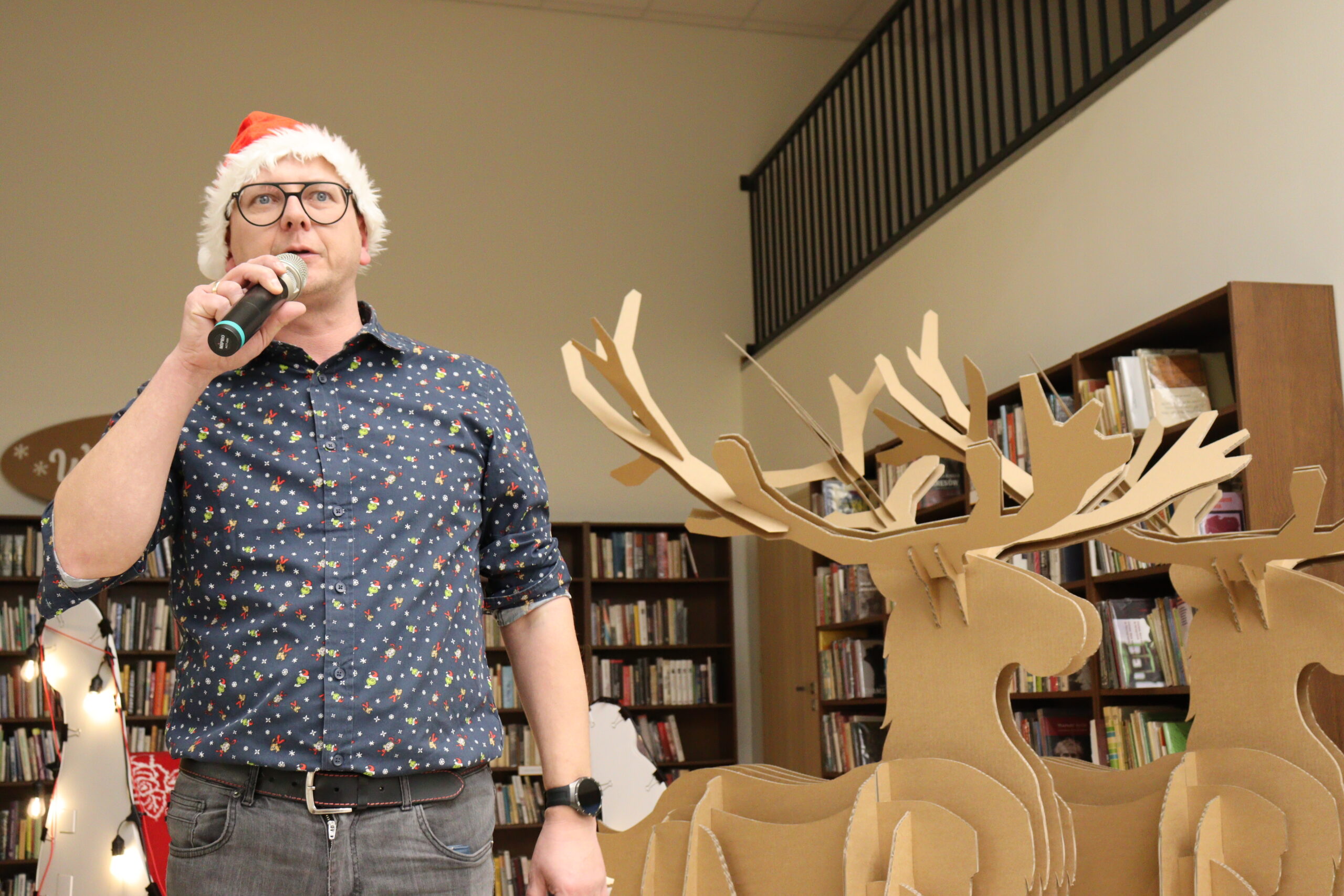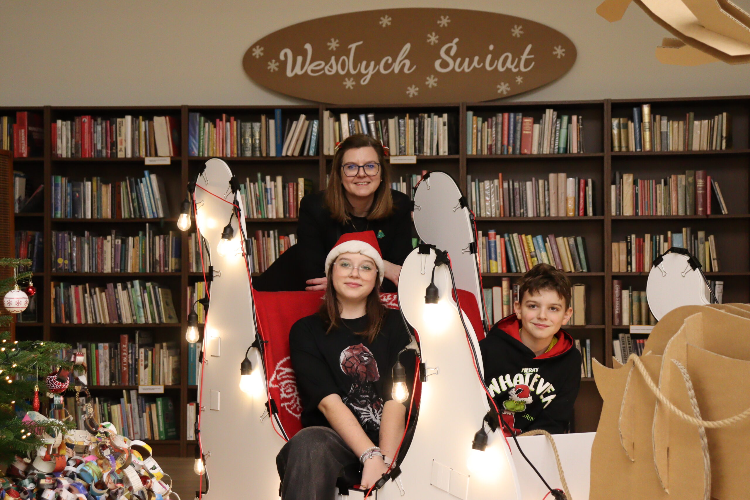 Po zapadnięciu zmroku odbyło się uroczyste uruchomienie świątecznej iluminacji. Park przed biblioteką rozbłysnął świątecznymi światłami, tworząc wyjątkową, magiczną scenerię. Kulminacyjnym momentem wydarzenia było wspólne włączenie świateł na gminnej choince, które zgromadziło uczestników w atmosferze radości i wspólnoty.