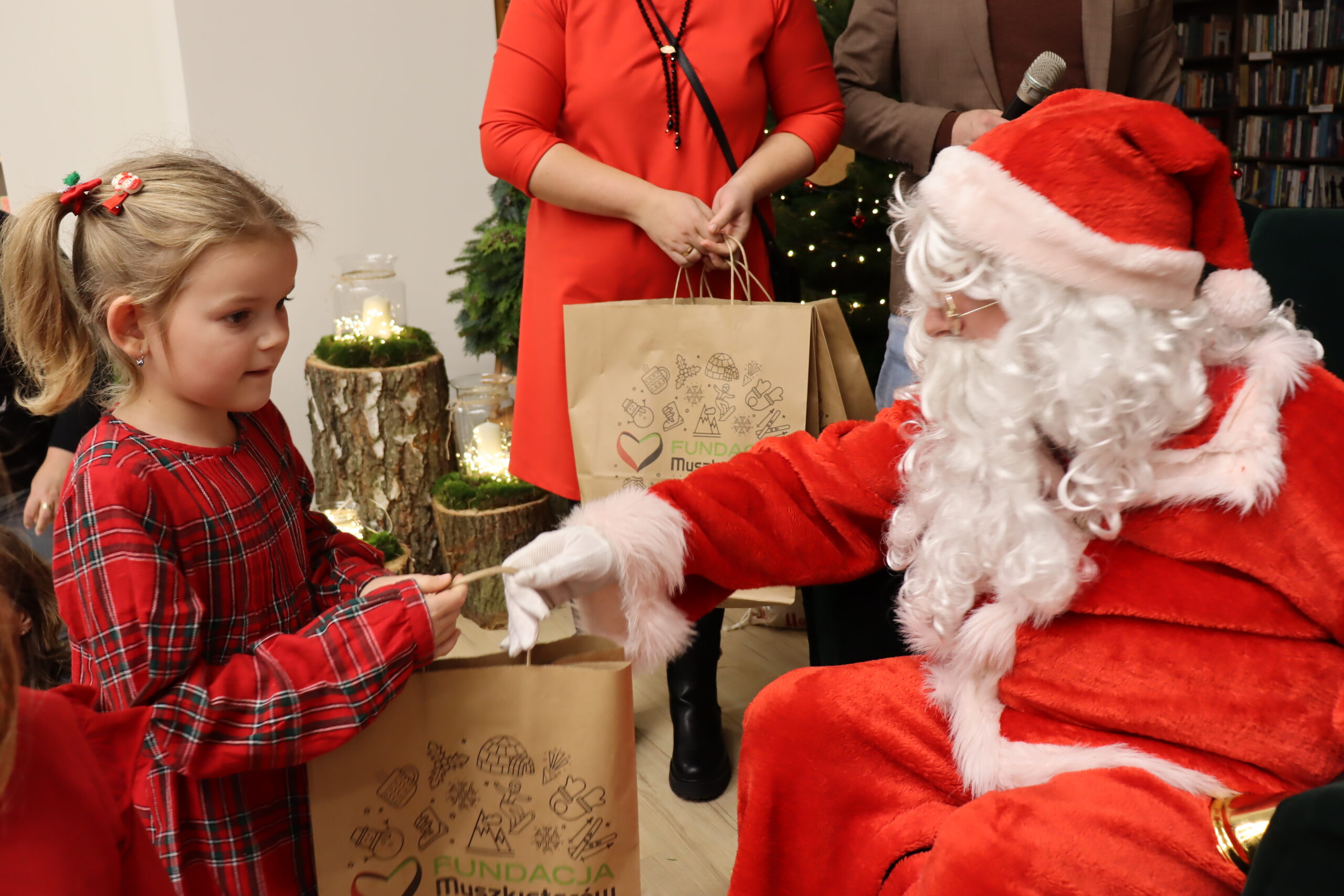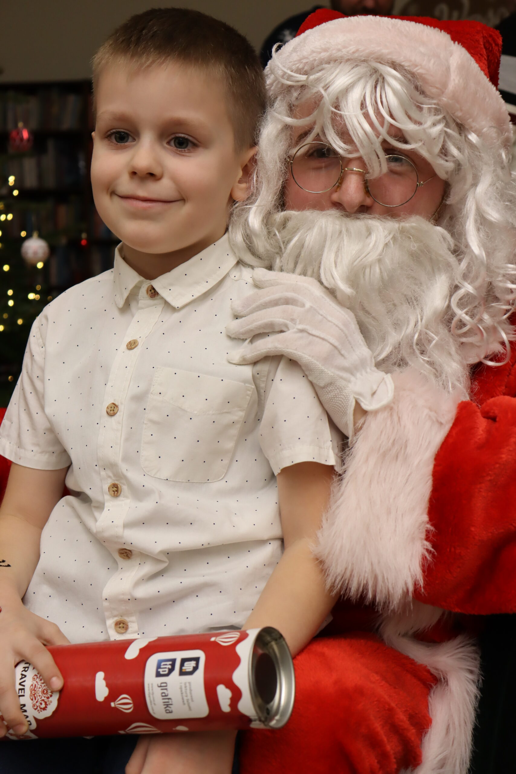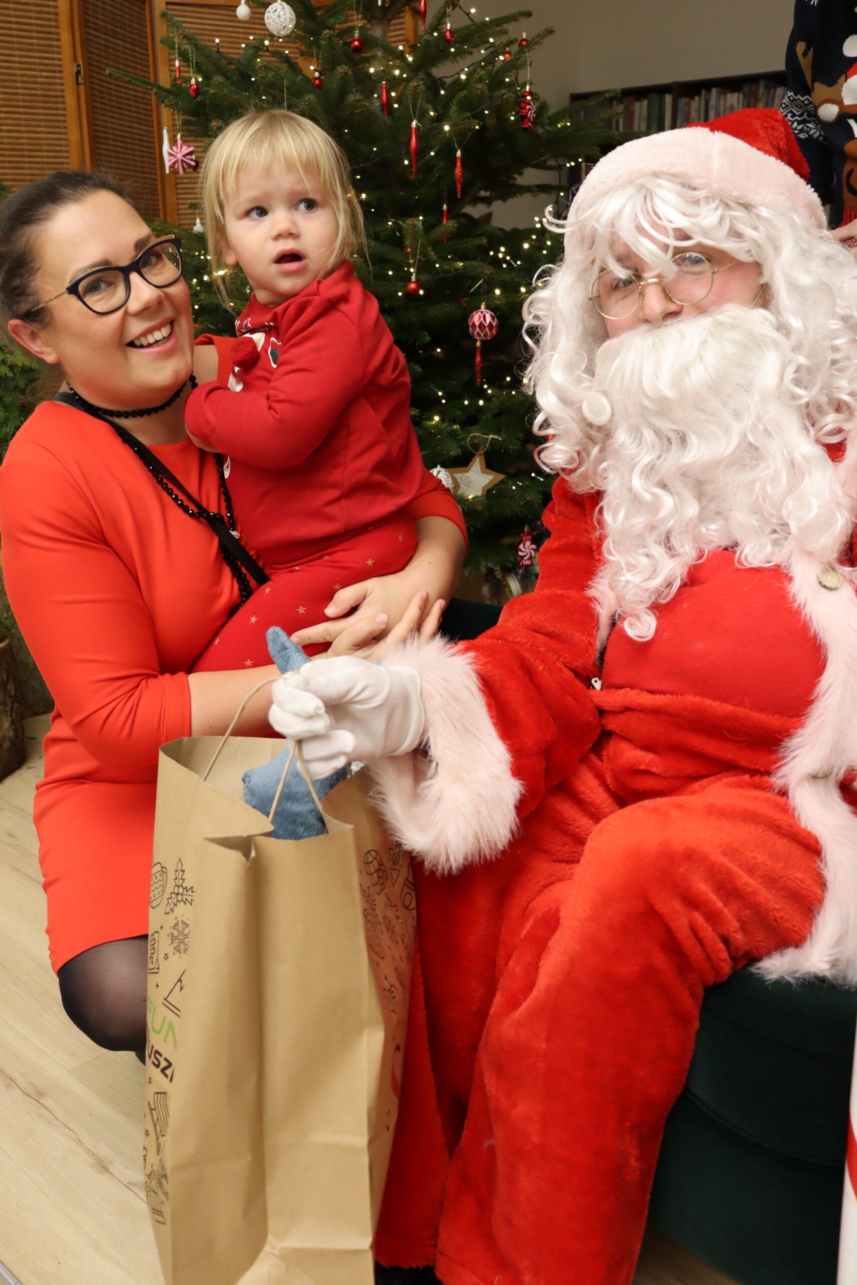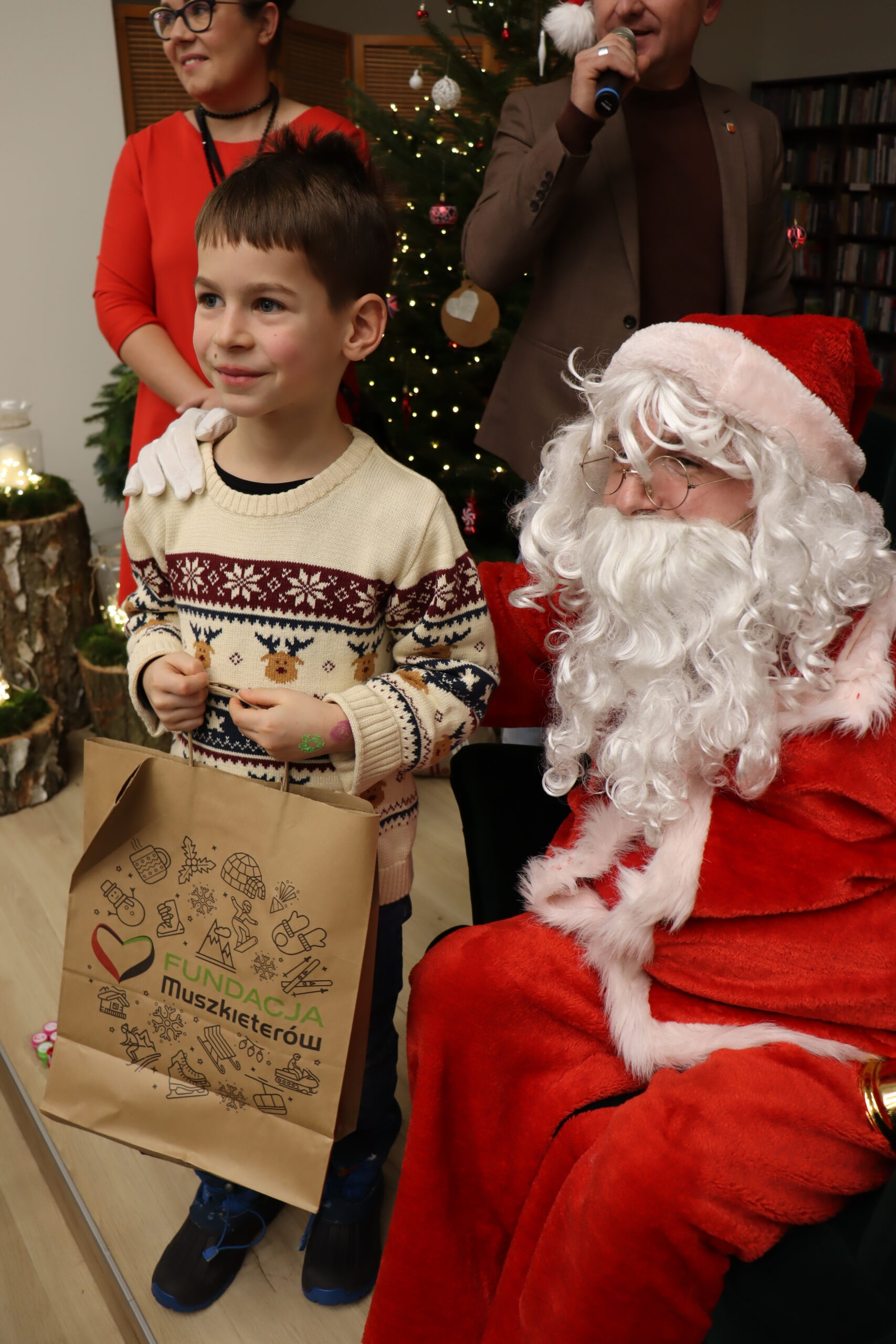 Na dzieci czekał słodki poczęstunek – wata cukrowa, cukierki, ciepłe kakao oraz aromatyczna zimowa herbata. Nie zabrakło również wizyty św. Mikołaja, który miał pełne ręce roboty, wręczając prezenty i pozując do zdjęć z najmłodszymi uczestnikami spotkania. Upominki zostały ufundowane przez lokalnych przedsiębiorców, którym serdecznie dziękujemy za zaangażowanie i wsparcie – dzięki Państwa hojności na twarzach dzieci pojawiło się wiele radosnych uśmiechów.