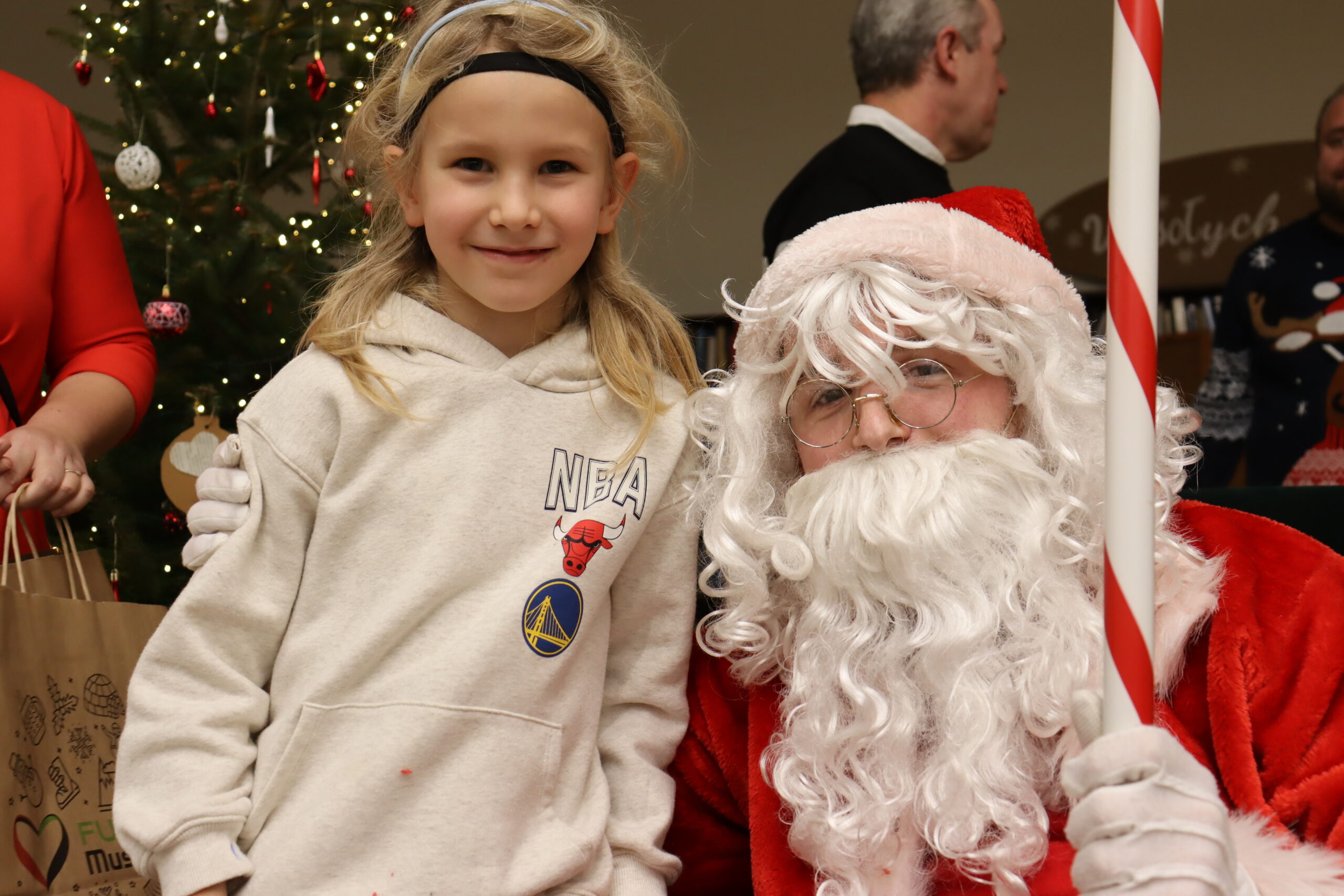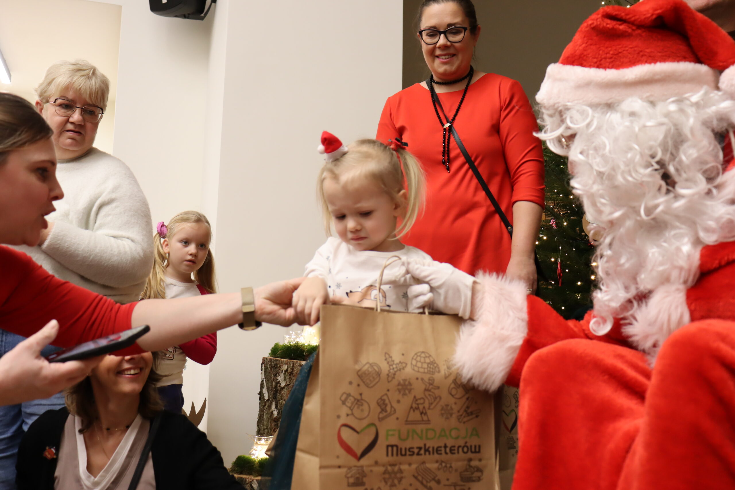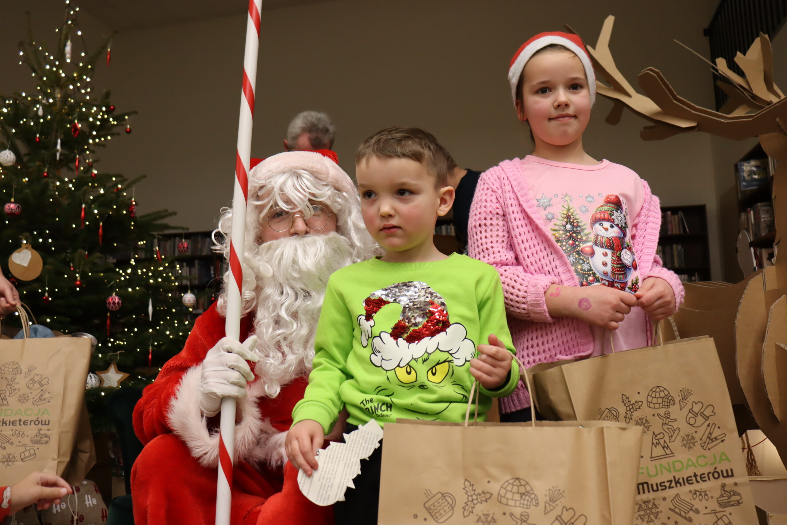 Na dzieci czekał słodki poczęstunek – wata cukrowa, cukierki, ciepłe kakao oraz aromatyczna zimowa herbata. Nie zabrakło również wizyty św. Mikołaja, który miał pełne ręce roboty, wręczając prezenty i pozując do zdjęć z najmłodszymi uczestnikami spotkania. Upominki zostały ufundowane przez lokalnych przedsiębiorców, którym serdecznie dziękujemy za zaangażowanie i wsparcie – dzięki Państwa hojności na twarzach dzieci pojawiło się wiele radosnych uśmiechów.
