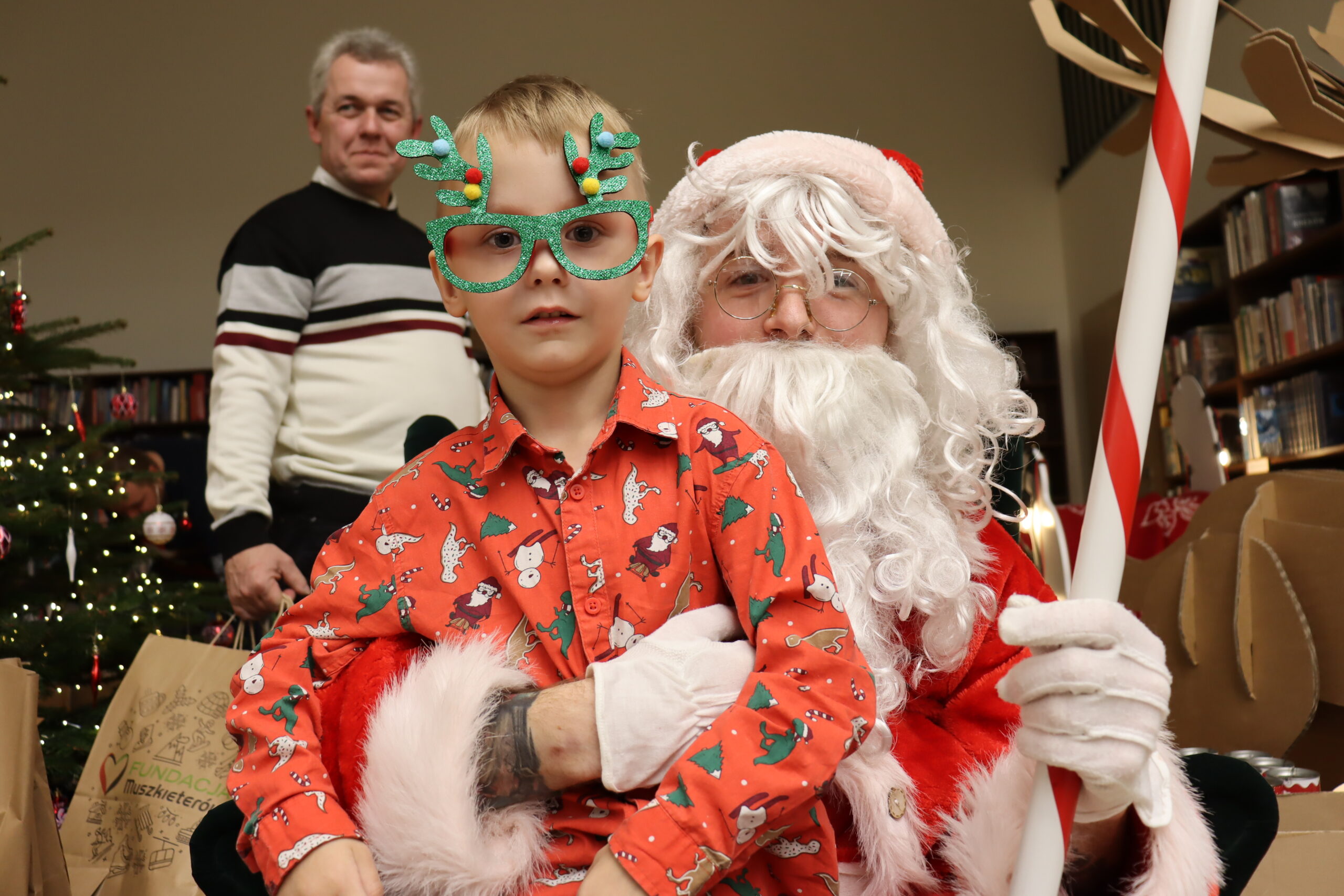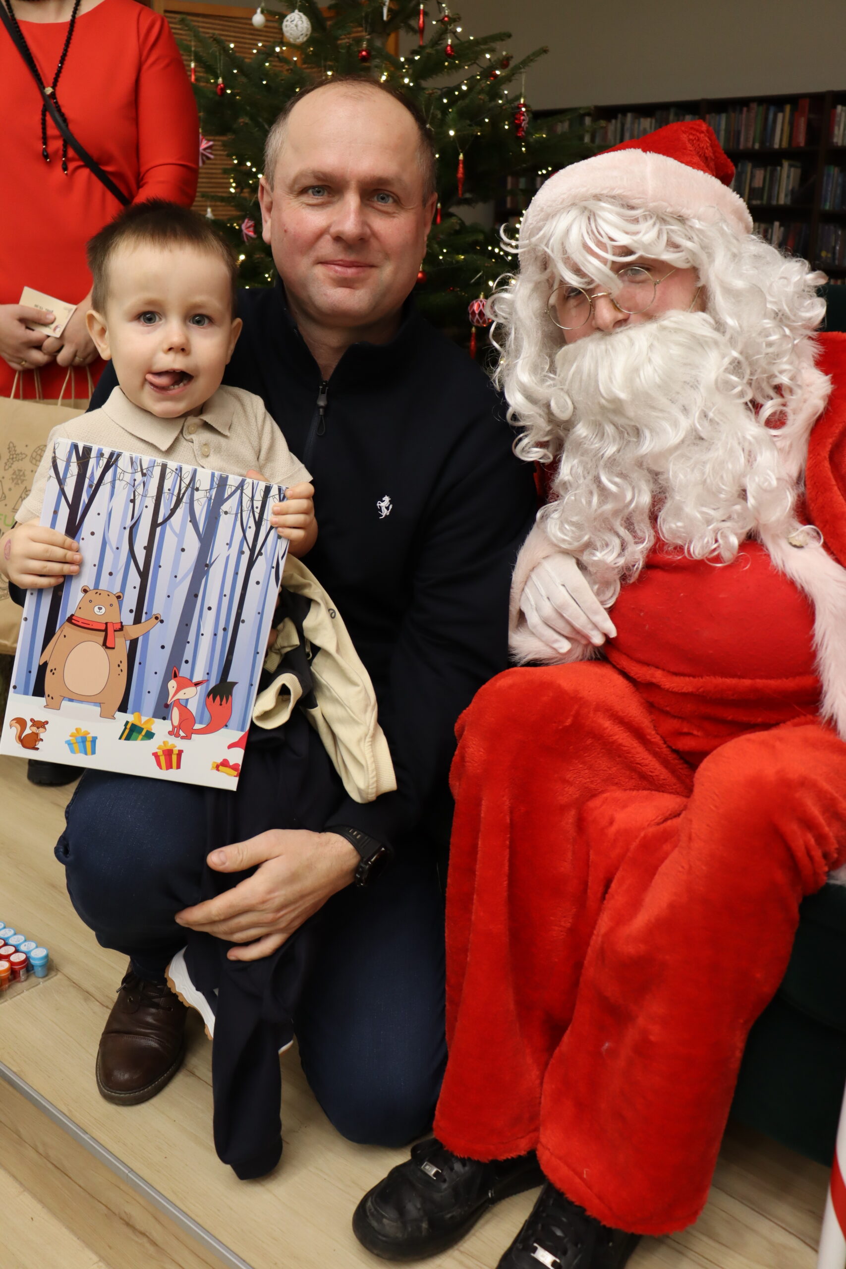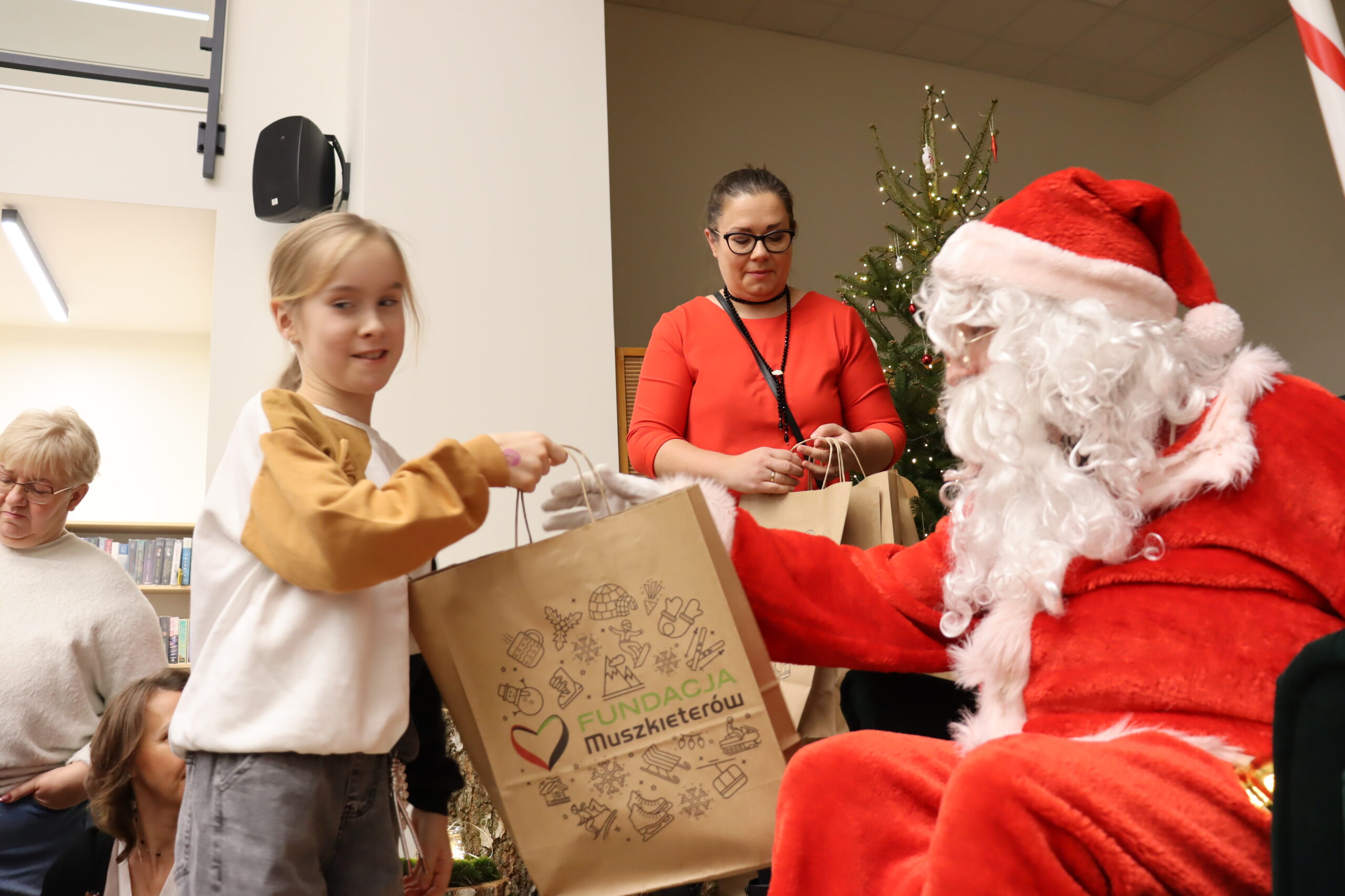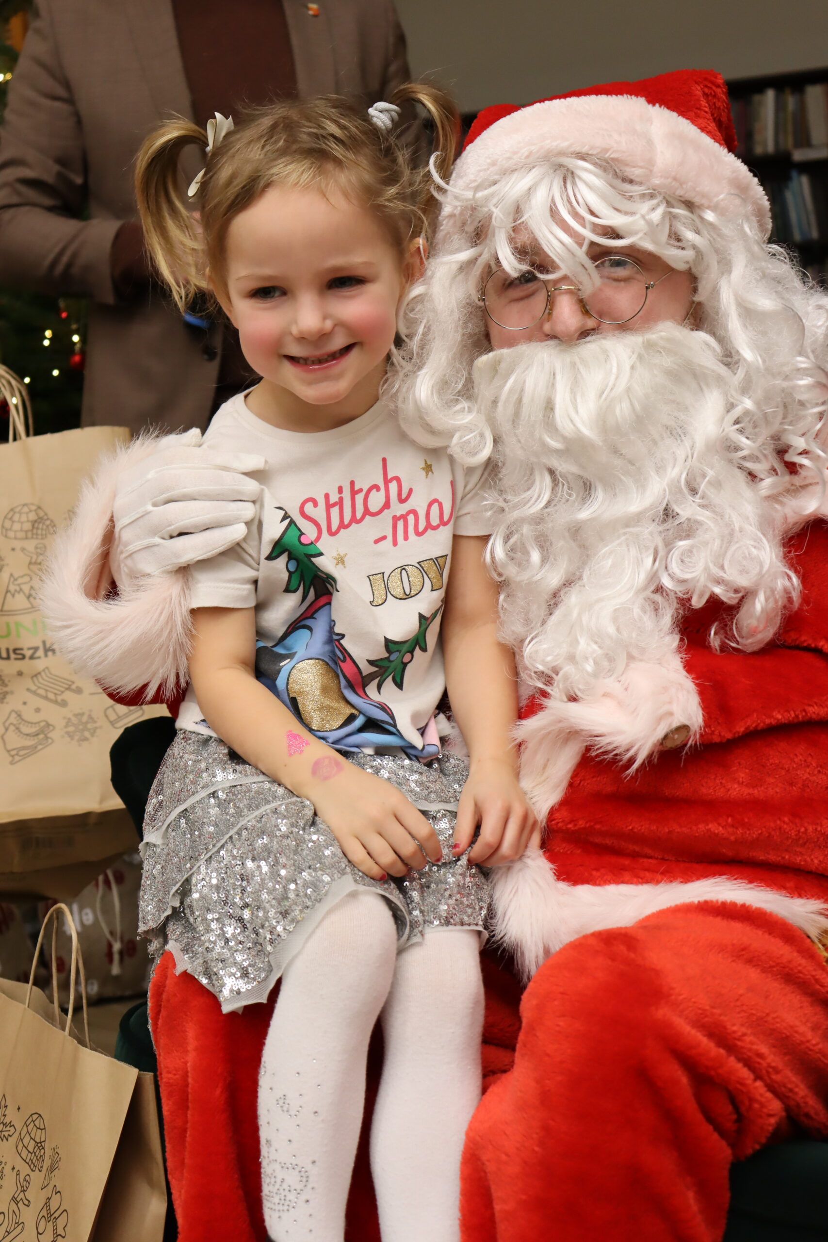Na dzieci czekał słodki poczęstunek – wata cukrowa, cukierki, ciepłe kakao oraz aromatyczna zimowa herbata. Nie zabrakło również wizyty św. Mikołaja, który miał pełne ręce roboty, wręczając prezenty i pozując do zdjęć z najmłodszymi uczestnikami spotkania. Upominki zostały ufundowane przez lokalnych przedsiębiorców, którym serdecznie dziękujemy za zaangażowanie i wsparcie – dzięki Państwa hojności na twarzach dzieci pojawiło się wiele radosnych uśmiechów.