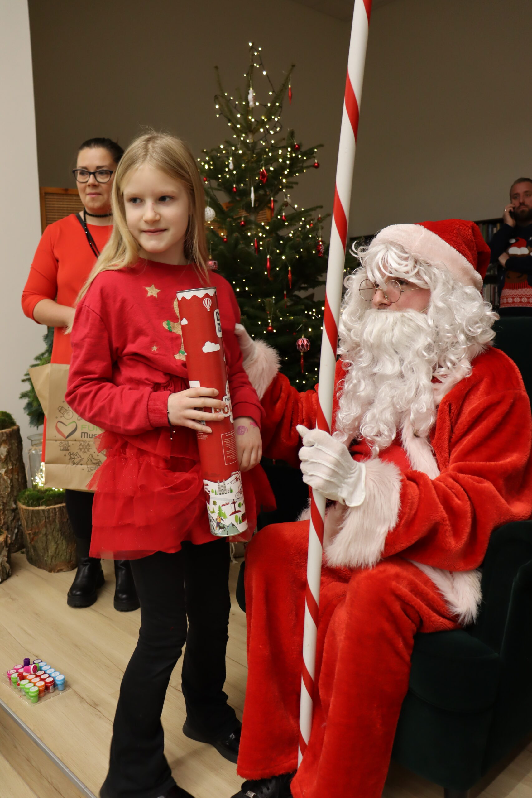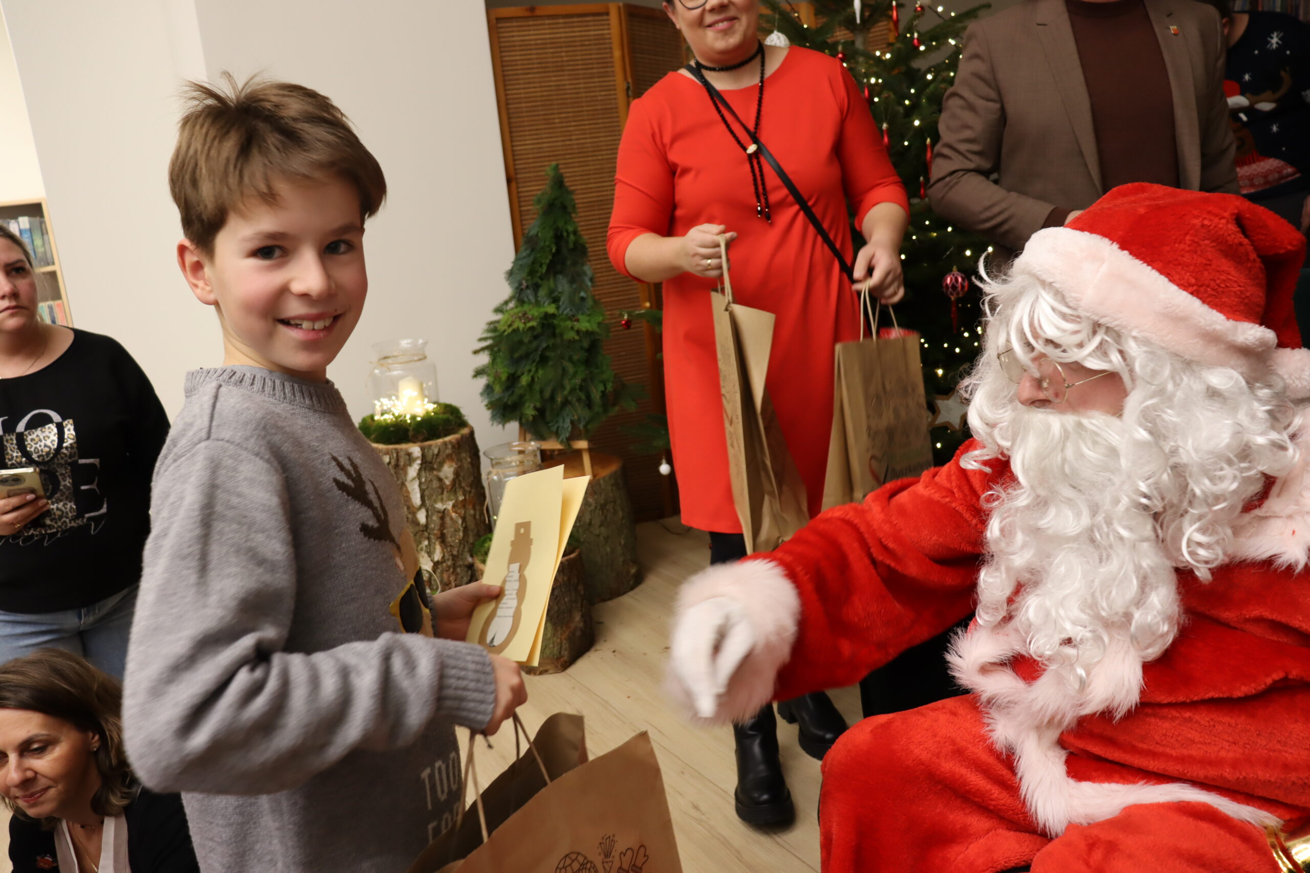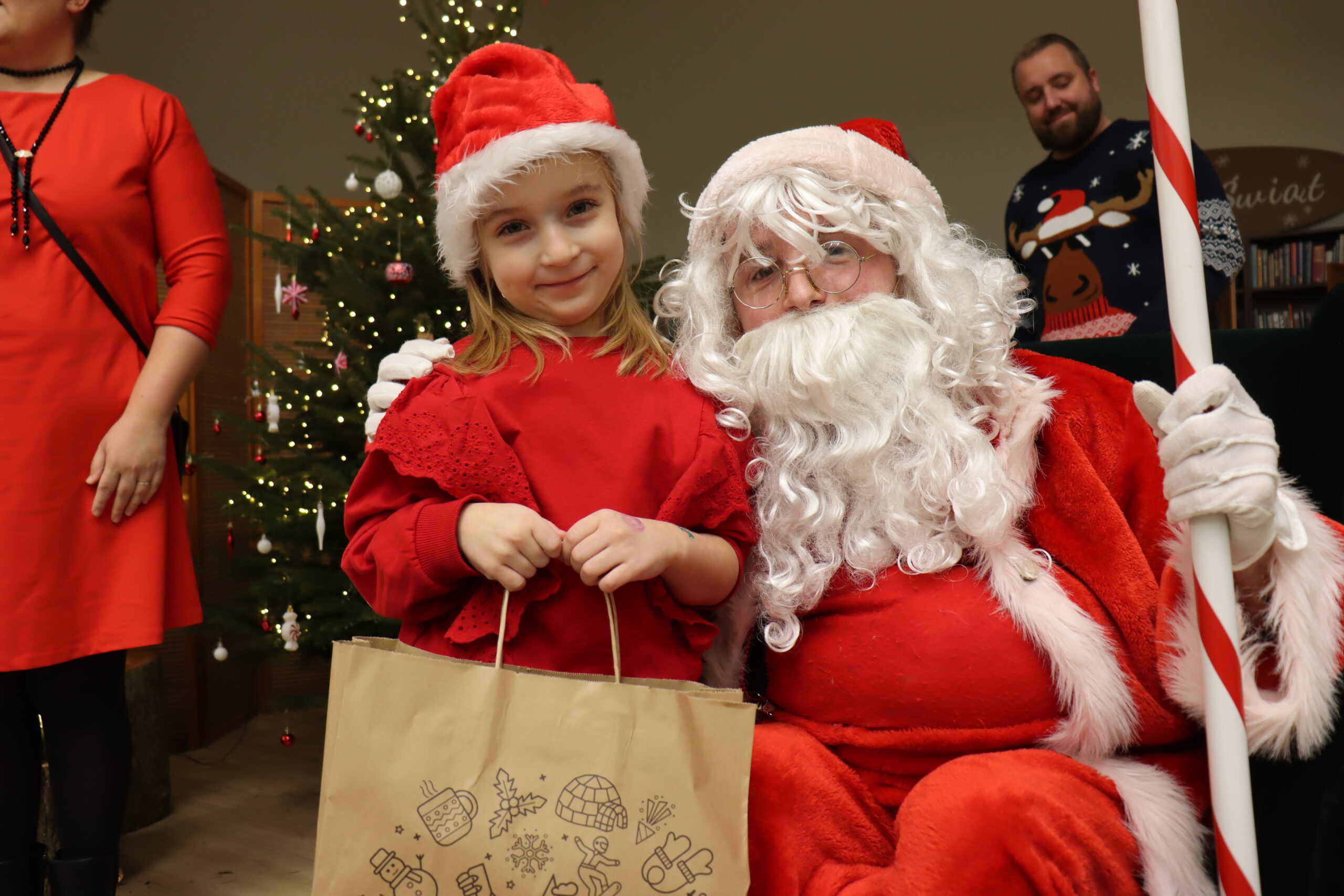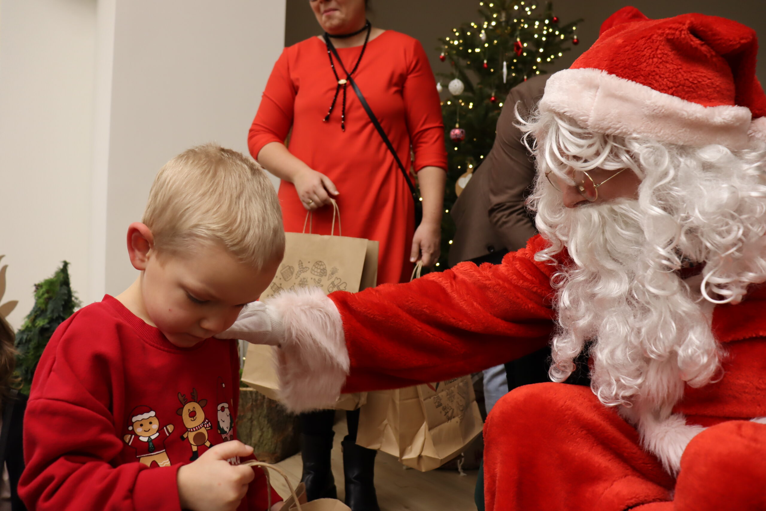 Gminne Mikołajki upłynęły w niezwykle radosnej i świątecznej atmosferze, przyciągając wielu mieszkańców – zarówno najmłodszych, jak i dorosłych. Dużym zainteresowaniem cieszyła się świąteczna ławeczka, która stała się popularnym miejscem do pamiątkowych zdjęć i wspólnego spędzania czasu. Uśmiechy, rozmowy i rodzinna atmosfera najlepiej oddawały charakter tego wyjątkowego wydarzenia.