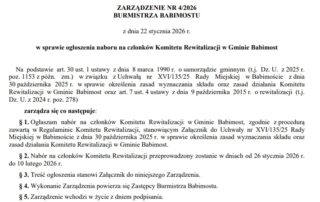 Burmistrz Babimostu, na podstawie art.4 ust. 1 ustawy z dnia 18 grudnia 2025 r., o zmianie ustaw w celu usprawnienia mechanizmów wsparcia odbiorców energii elektrycznej i ciepła (Dz. U. 2026, poz. 32) informuje, że na [...]