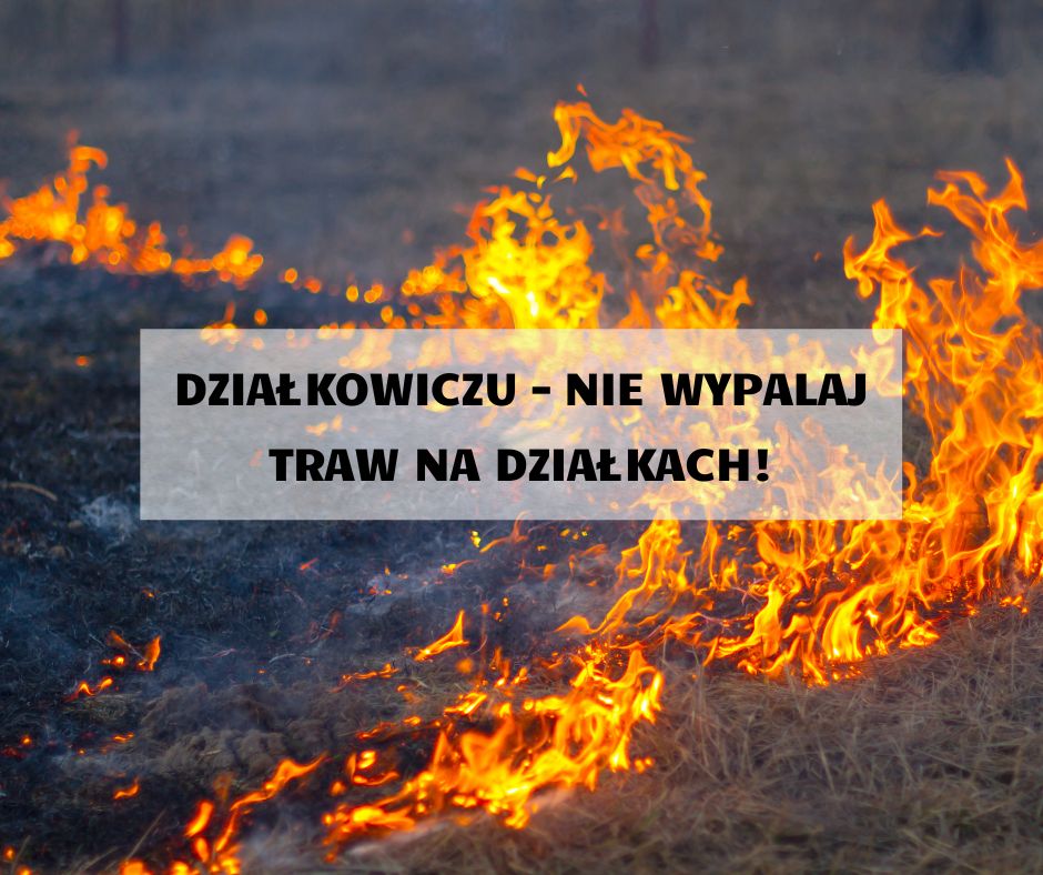 Wraz z nadejściem wiosny przypominamy wszystkim działkowiczom o bezwzględnym zakazie wypalania traw oraz pozostałości roślinnych na działkach i terenach zielonych. Choć niektórzy wciąż uważają, że jest to szybki sposób na uporządkowanie terenu, w rzeczywistości niesie on za sobą poważne zagrożenia dla ludzi, przyrody oraz mienia. Ogień bardzo łatwo wymyka się spod kontroli. Wystarczy niewielki podmuch wiatru, aby płomienie przeniosły się na sąsiednie działki, lasy, zabudowania czy infrastrukturę. Każdego roku wypalanie traw jest przyczyną licznych pożarów, które zagrażają zdrowiu i życiu mieszkańców oraz powodują znaczne straty materialne. Wypalanie traw ma także bardzo negatywny wpływ na środowisko. Ogień niszczy warstwę próchniczą gleby, zabija pożyteczne organizmy oraz drobne zwierzęta – w tym jeże, owady zapylające i ptaki gniazdujące na ziemi. Przypominamy również, że wypalanie traw jest zabronione przepisami prawa i może skutkować mandatem, a w przypadku spowodowania pożaru – także odpowiedzialnością karną. Zamiast wypalać: skoszoną trawę warto kompostować, pozostałości roślinne można przekazać do bioodpadów, teren można uporządkować poprzez koszenie lub grabienie. Apelujemy do wszystkich działkowiczów o rozwagę i odpowiedzialność. Dbajmy wspólnie o bezpieczeństwo mieszkańców oraz o środowisko naturalne naszej gminy. Nie wypalaj – reaguj! Jeśli zauważysz pożar traw lub niebezpieczne wypalanie, niezwłocznie powiadom odpowiednie służby. W przypadku zagrożenia dzwoń pod numer alarmowy 112 lub bezpośrednio do straży pożarnej 998.