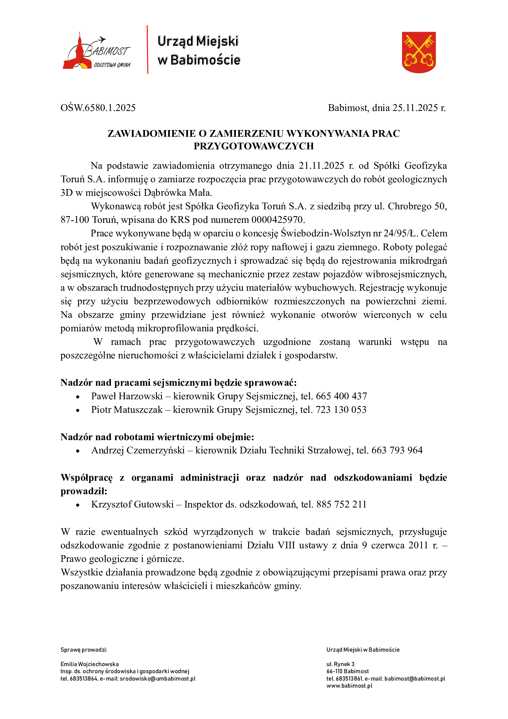 Zawiadomienie o zamierzeniu wykonywania prac przygotowawczych